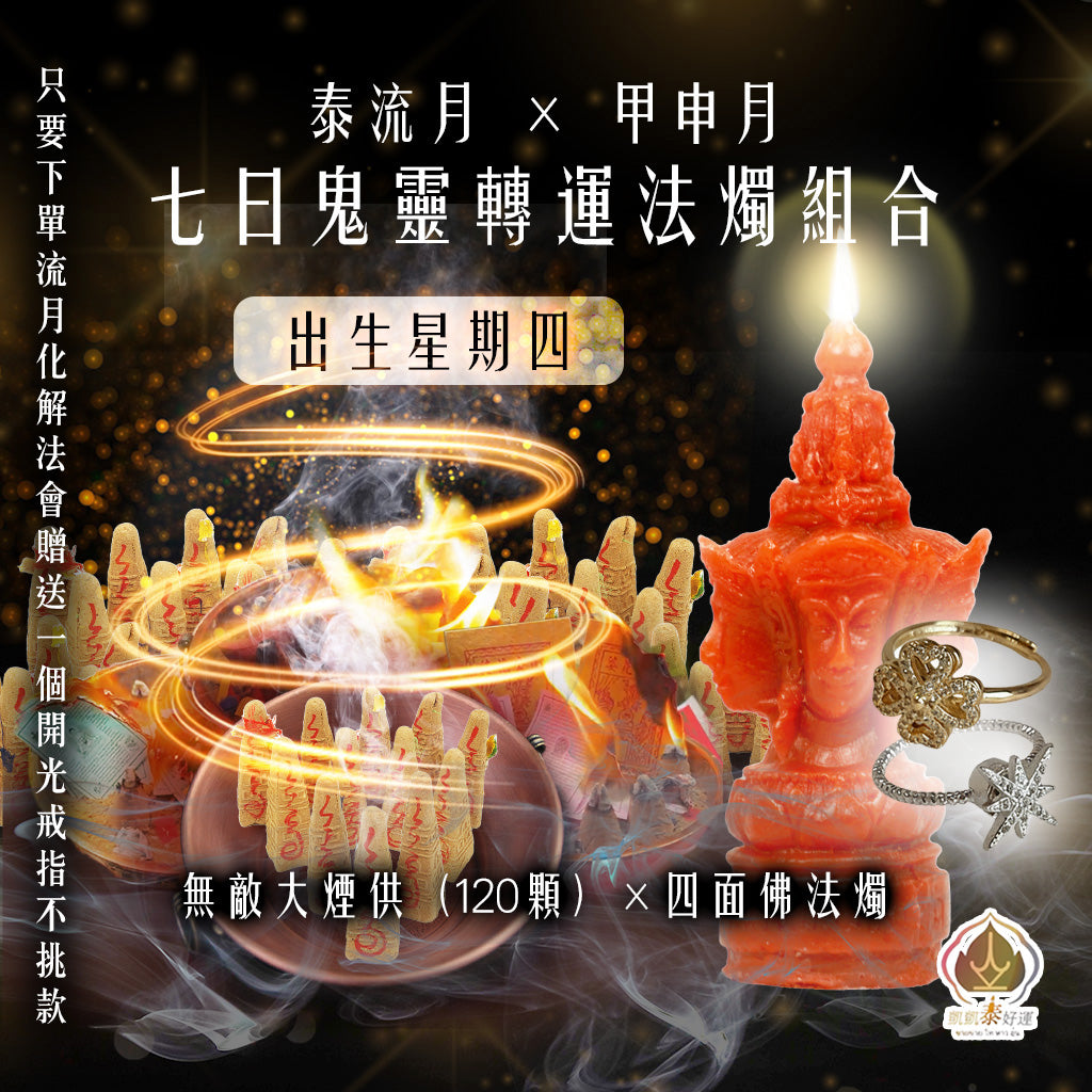 【星期四】泰流月・七日鬼靈轉運法燭組合(贈送開光戒指)